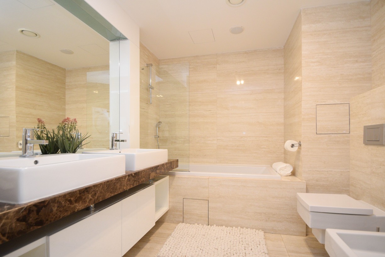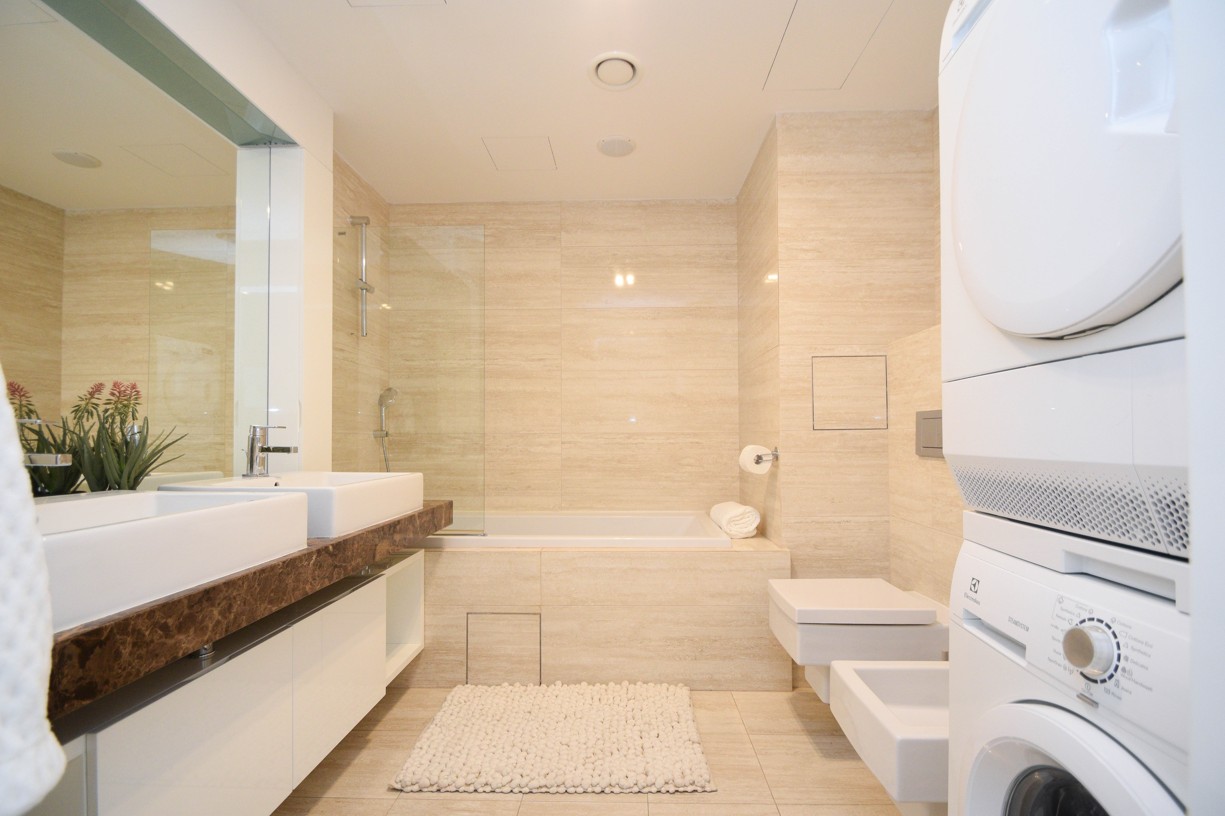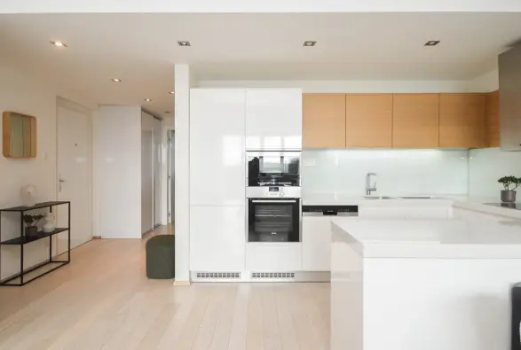 Квартира сдаётся полностью меблированной и оборудованной, включая бытовую технику: стиральную машину, телевизор, а также встроенную кухонную технику — холодильник с морозильной камерой, электрическую духовку, вытяжку, электрическую варочную панель, микроволновую печь и посудомоечную машину.