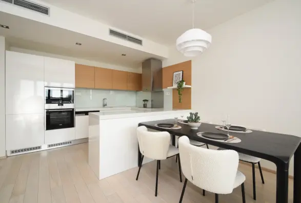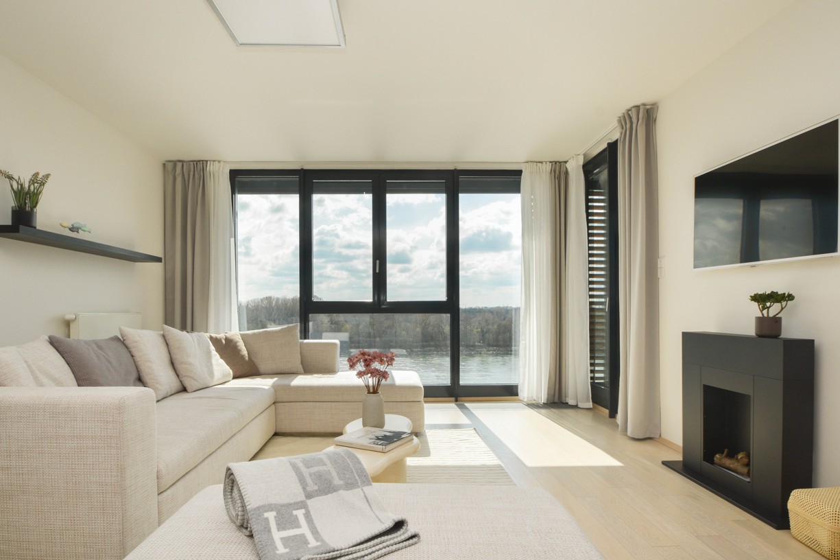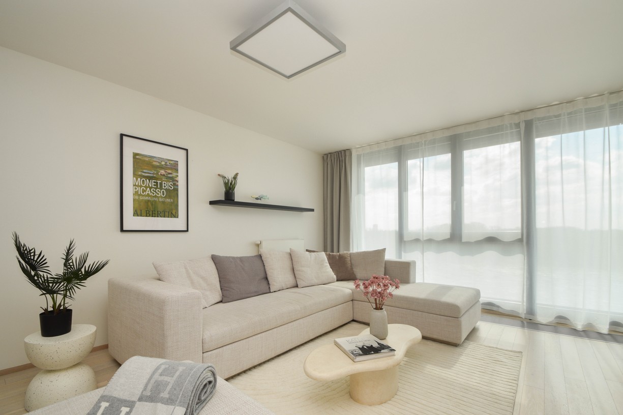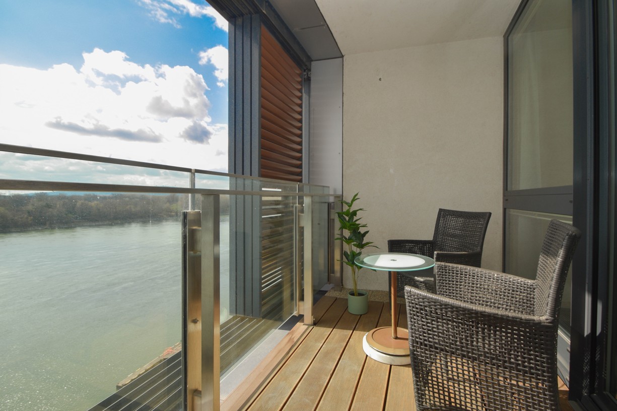 Солнечная 3-комнатная квартира площадью 98 м² с балконом и видом на Дунай расположена в комплексе River Park.