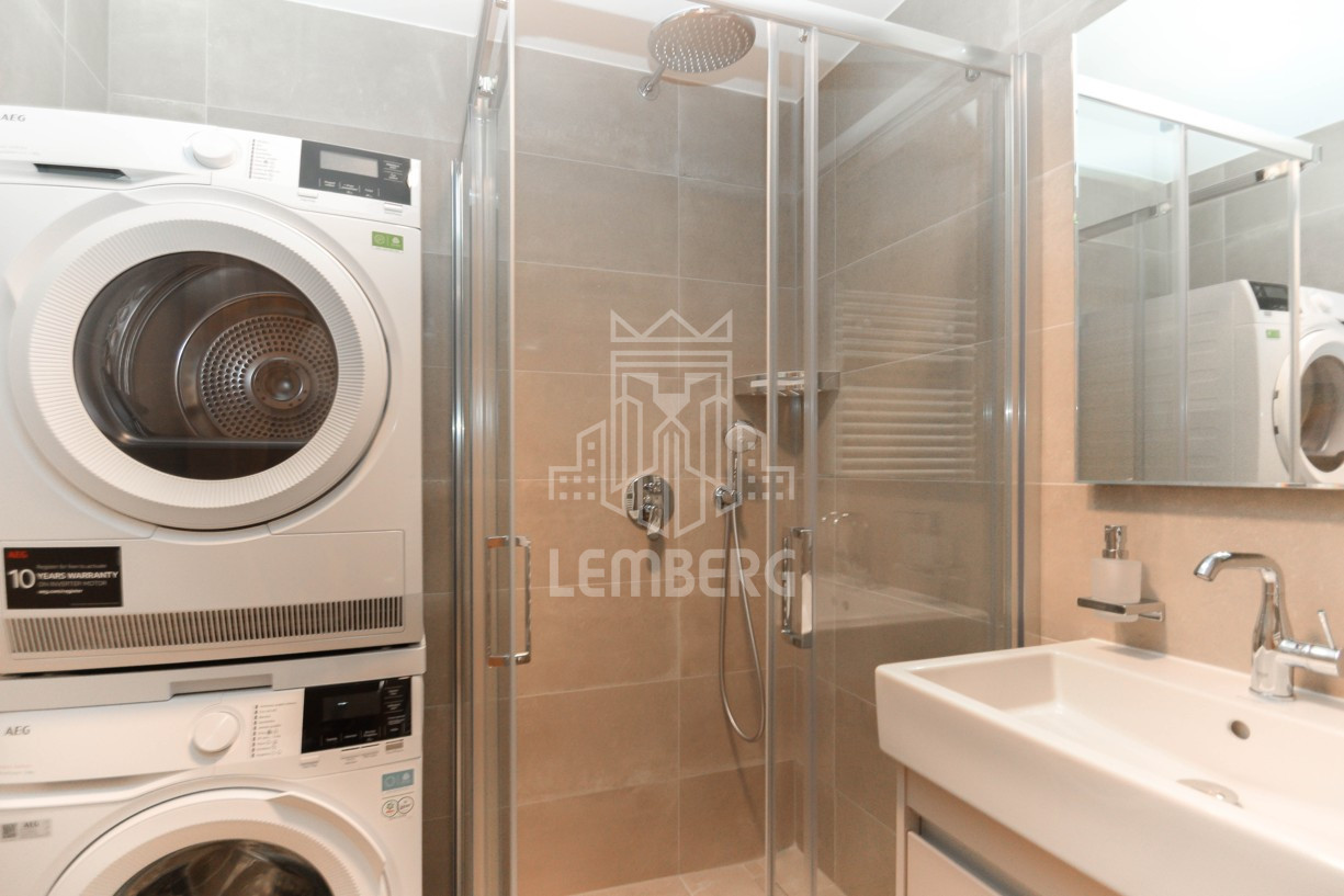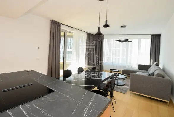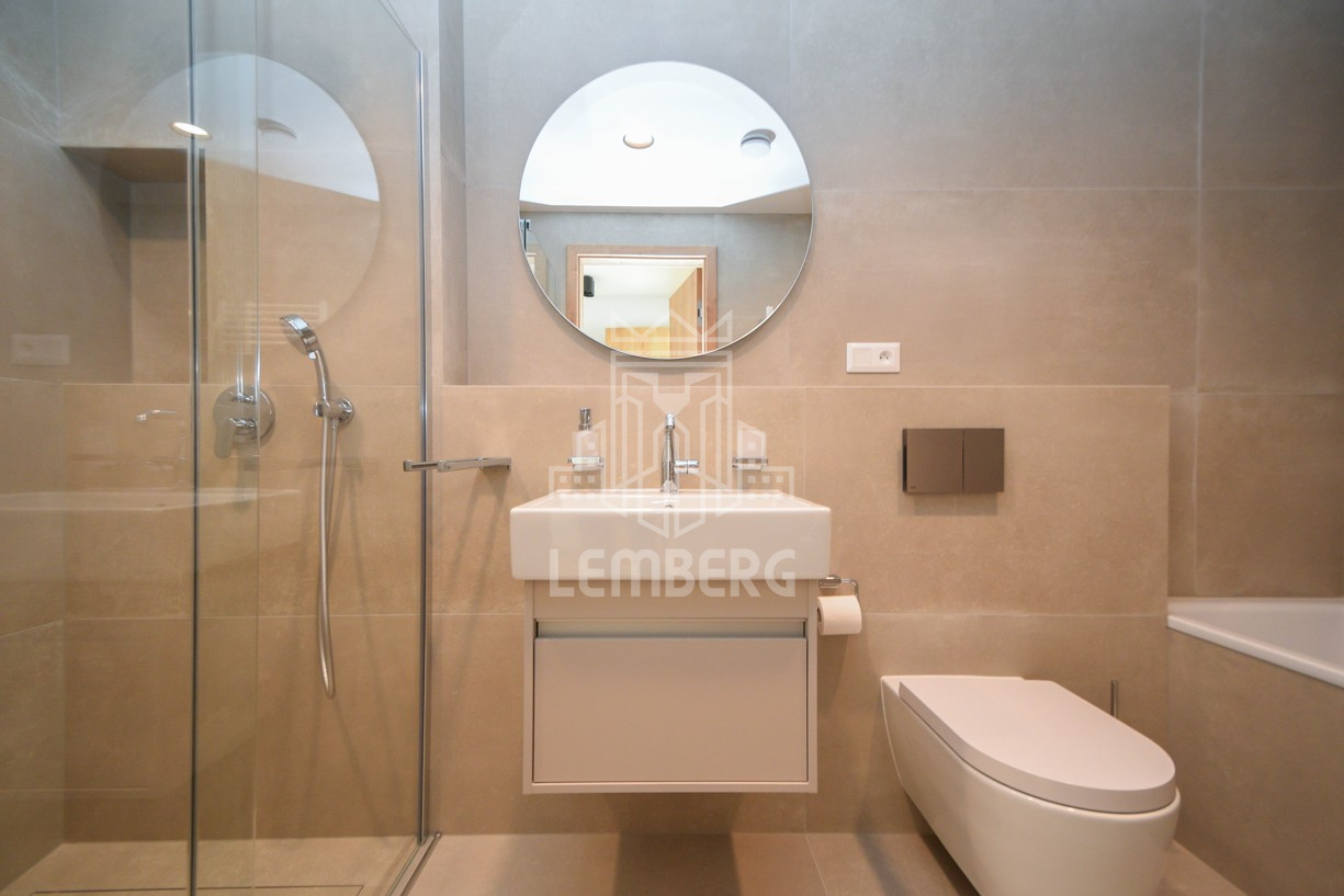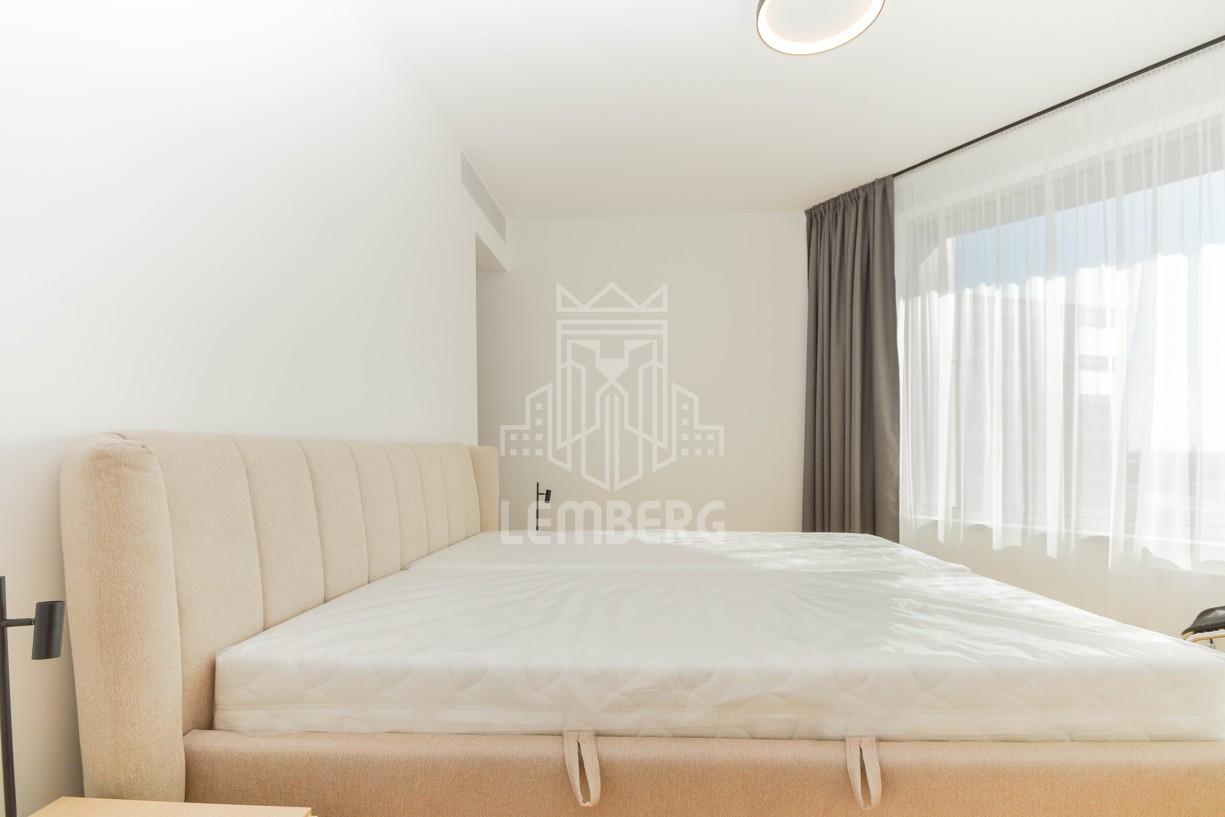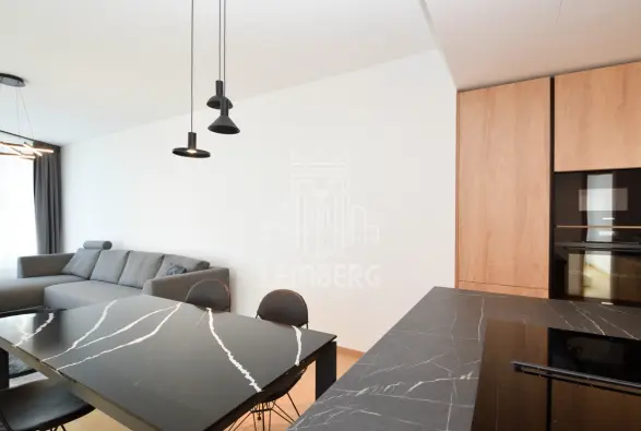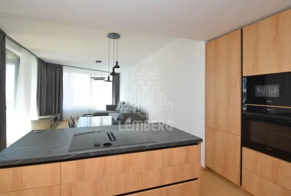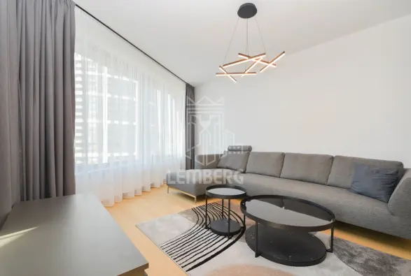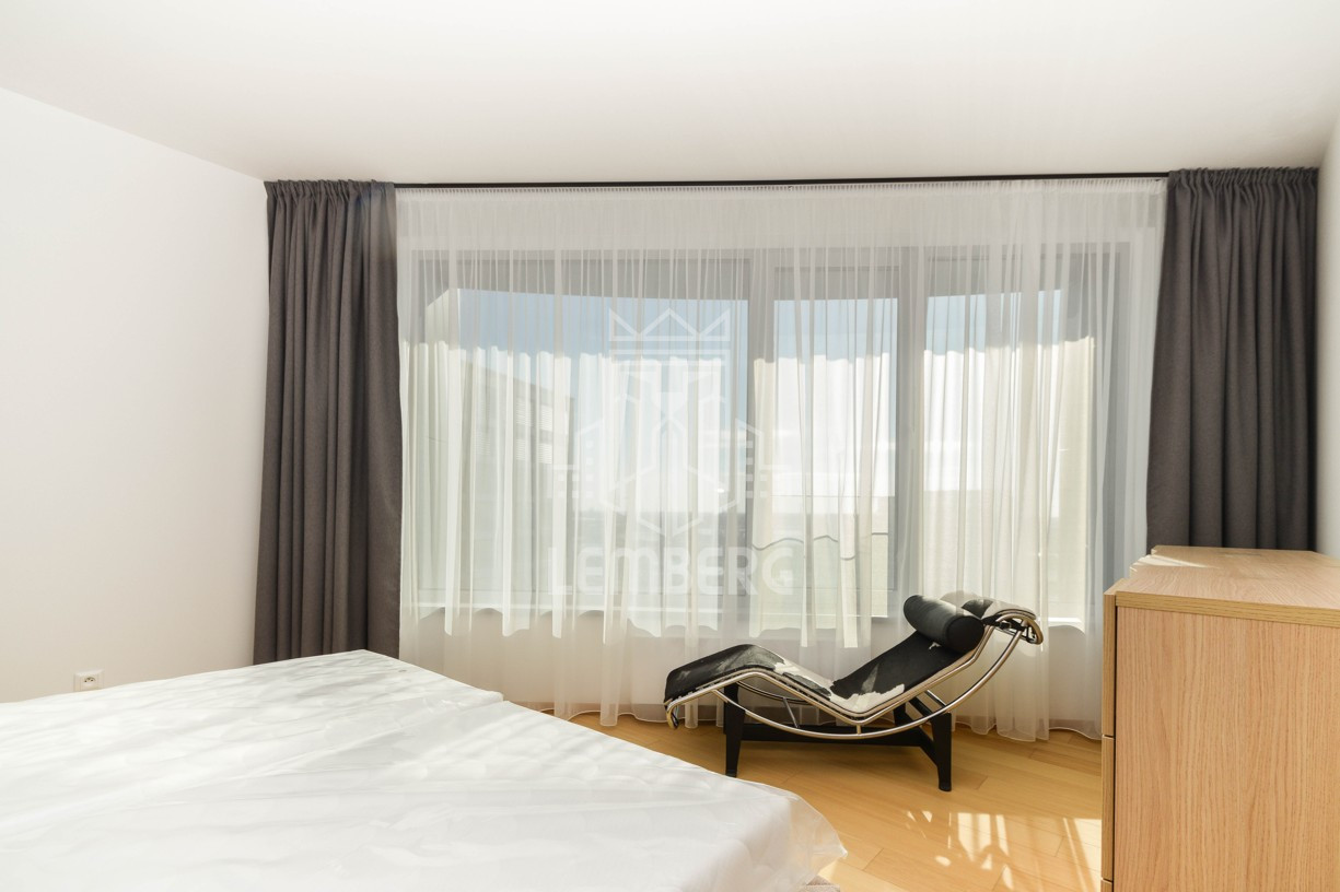 Современная 4-комнатная квартира площадью 112 м2 с лоджией 1,75 м2 расположена в эксклюзивном жилом проекте Sky Park 4.veža. Башня является частью многофункционального проекта, спроектированного всемирно известным архитектором Zaha Hadid. Жители имеют доступ к смотровой террасе на 30-м этаже с панорамным видом на весь город.