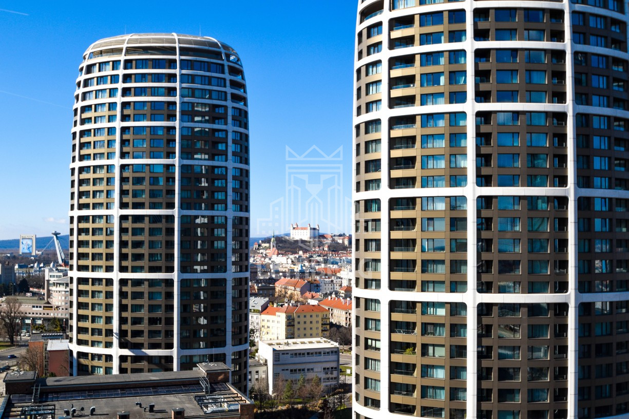 Квартира расположена на 15 этаже из 30. Планировка квартиры состоит из прихожей, 1 ванной комнаты с туалетом, душем и ванной, отдельного туалета, второй ванной комнаты с душевой кабиной, просторной гостиной, соединенной с кухней, и 3 отдельных спален. Главная спальня имеет собственный walk-in гардероб. Из гостиной есть выход на лоджию с видом на Bratislavský hrad и реку Dunaj.
