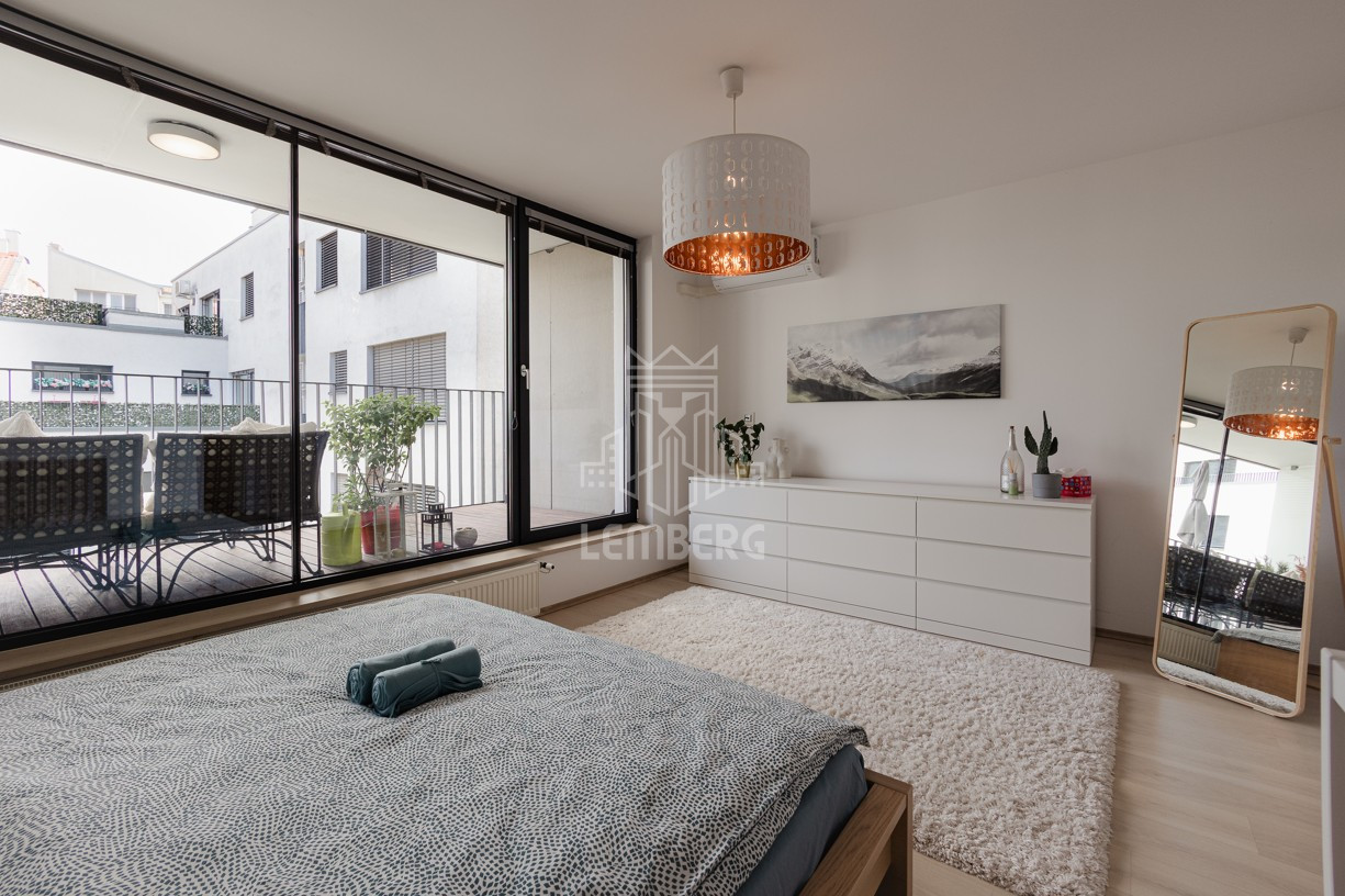 Премиальная солнечная 4-комнатная квартира площадью 140 м², с двумя террасами и небольшим балконом расположена в проекте Dunajská Inner City Residence на улице Dunajská.