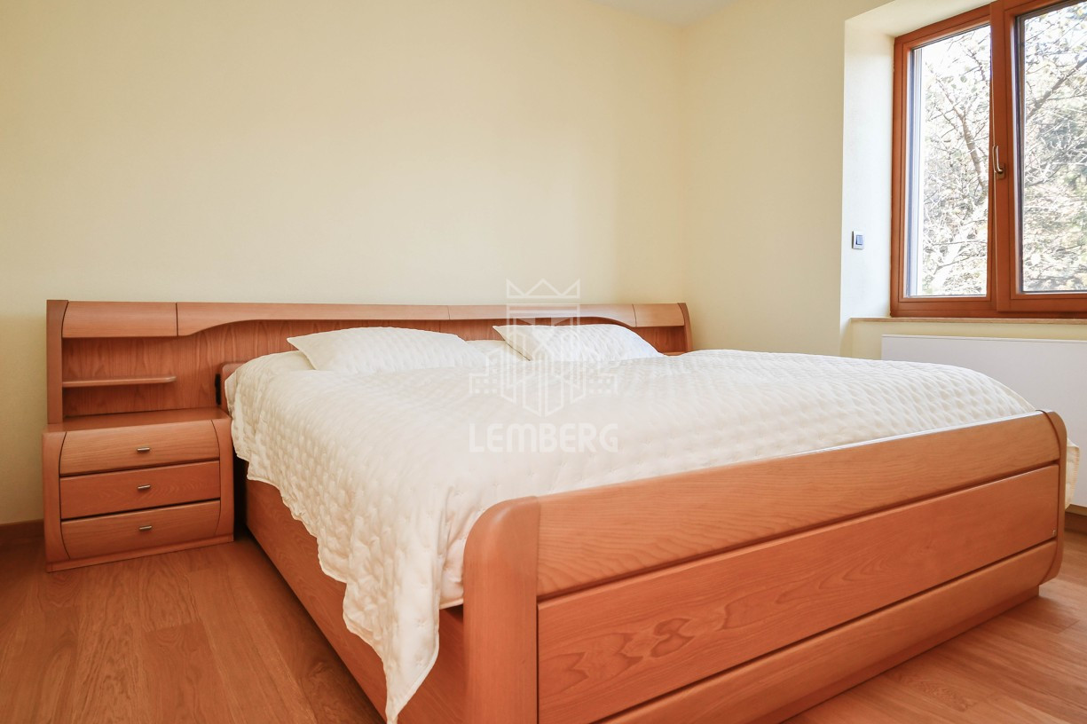 Будинок пропонується в оренду мебльованим або без меблів (за домовленістю). Оснащення включає підігрів підлоги, стельове охолодження, камін, сигналізацію та автономне опалення газовим котлом.